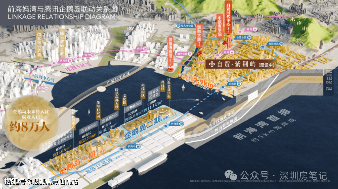妈湾片区规划726.5公顷,容积率1.28-1.48,是低密生态豪宅住宅区的理想选择。妈湾是前海三湾中唯一成片规划的纯居住区,未来供应稀缺。腾讯科技城(大铲湾)预计未来几年将陆续入驻大量员工,妈湾是其最直接的居住外溢区域。