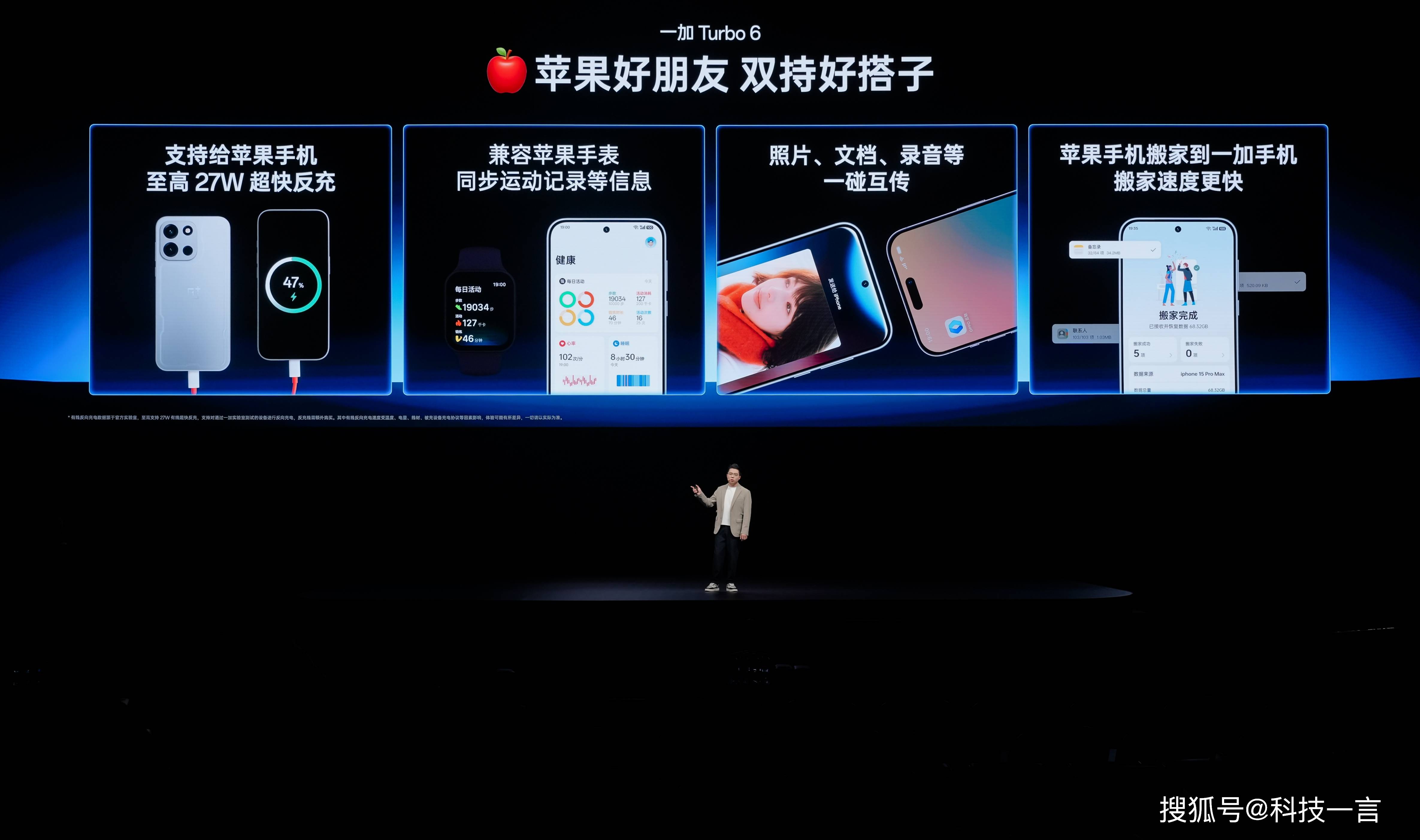在ColorOS 16加持下,一加 Turbo 6 打破系统边界,实现原生级与iPhone 生态的无缝互联,支持通话共享、通知同步、一碰互传等,让信息随需流转,双机协作更轻松。一加 Turbo 6 完美适配兼容苹果耳机与苹果手表,真正为选择一加 Turbo 6 和iPhone双持的用户,带来「一部设备,连通全部」的跨系统智慧体验。
