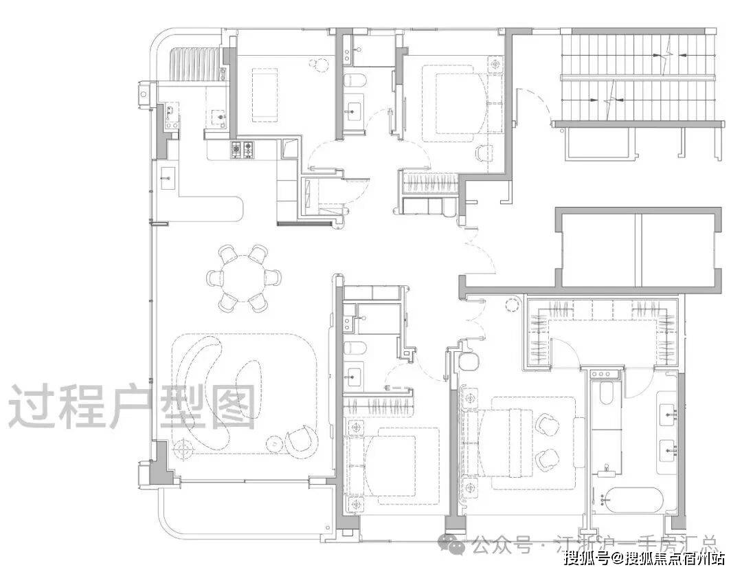 主卧大套房设计带超大主卫和衣帽间,面积约50㎡,尺度感与市面上近300㎡的顶豪拉平。