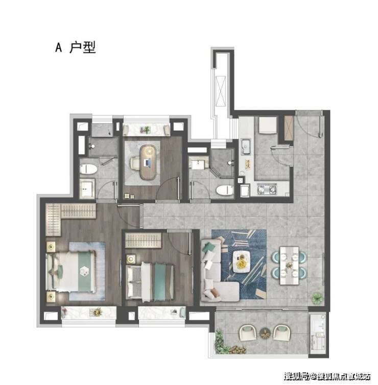 约99㎡的户型设计尤为精巧,荣获2022亚太室内设计大奖。它拥有6.8米双联阳台系统,通过专利设计的折叠门,可瞬间变为阳光书房。全屋更有23处收纳点,包括玄关旋转鞋架、飘窗暗格等,收纳能力堪比120㎡户型。