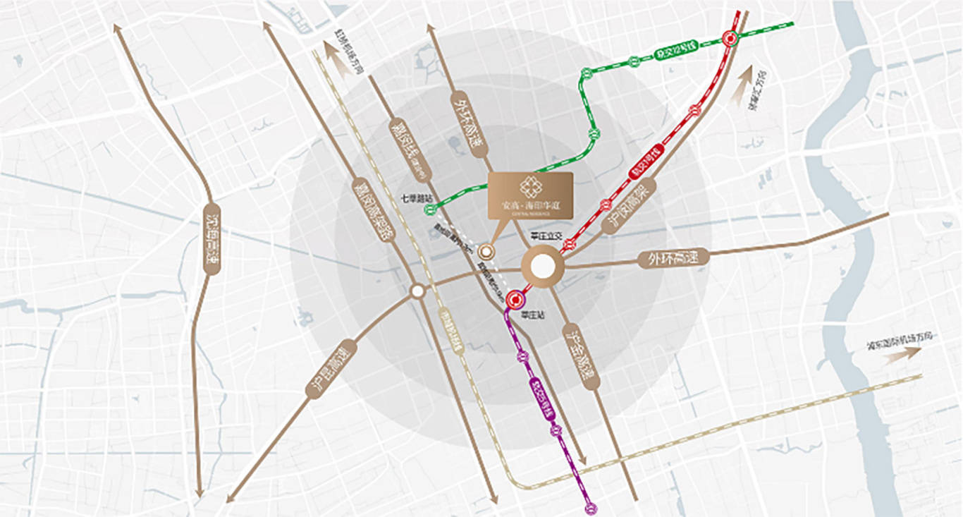 1交:莘庄立交——上海最大的立交桥,与外环线、沪闵路高架、沪昆高速(G60),沪金高速(S4)等盘桓交接、可快速通达上市中心城区和长三角核心城市群;